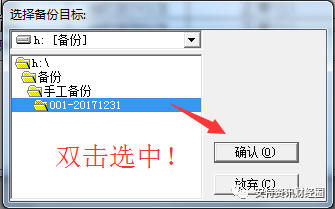 (3)等候一段時(shí)間 數(shù)據(jù)庫(kù)進(jìn)行后臺(tái)數(shù)據(jù)處理 在彈出選擇備份目標(biāo)窗口后引導(dǎo)至備份前新建的【XXX賬套20171231】文件夾,選擇時(shí)請(qǐng)務(wù)必雙擊該文件夾。