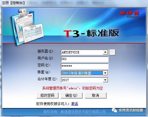 所以我們?cè)谥匦碌卿洝鞠到y(tǒng)管理】時(shí),登錄用戶用 賬套主管 身份登錄,登錄會(huì)計(jì)年度選擇2017年;