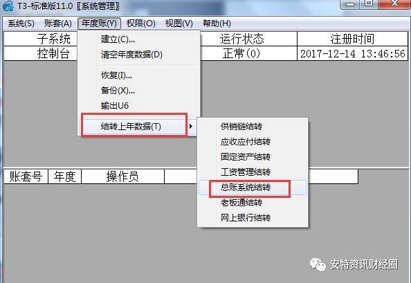 具體步驟:年度帳下拉菜單-->結(jié)轉(zhuǎn)上年數(shù)據(jù)供銷鏈接轉(zhuǎn)-->確認(rèn)結(jié)轉(zhuǎn)-->開始結(jié)轉(zhuǎn)