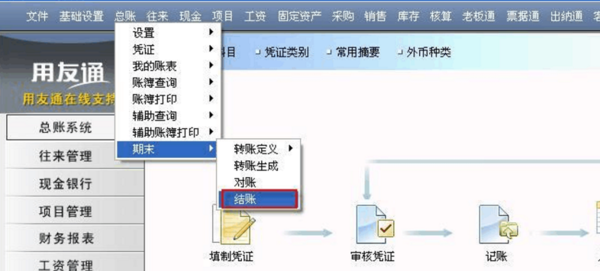 1、進入軟件,打開總賬系統(tǒng)模塊,依次點擊總賬——期末——結賬。