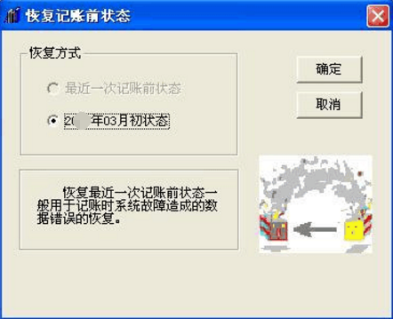 4、在彈出的“恢復記賬前狀態(tài)”窗口,根據(jù)需要選擇“最近一次記賬前狀態(tài)”或“××××年××月初狀態(tài)”。