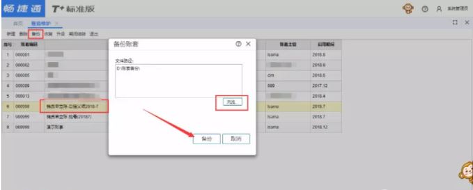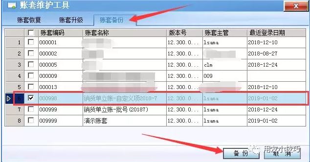 2.點擊賬套備份-勾選賬套-點擊備份-選擇路徑