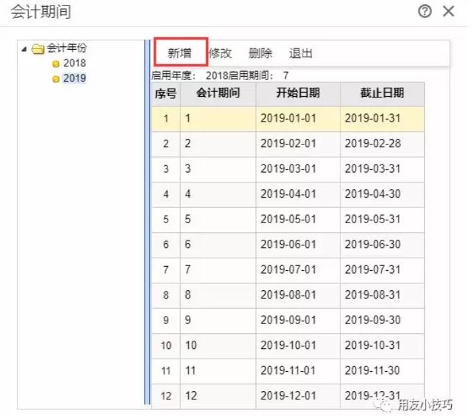 1.點擊系統(tǒng)管理-會計期間,新增19年度