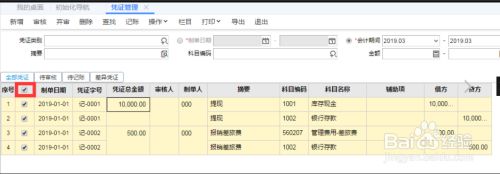 進(jìn)入“憑證管理”查詢結(jié)果的界面,選擇需要反記賬的憑證,勾上“序號(hào)”前的方框,選擇所有憑證。