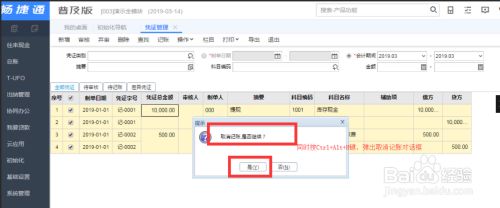 同時(shí)按鍵盤上的“Ctrl+Alt+H”組合鍵,彈出”取消記賬,是否繼續(xù)”的提示信息,點(diǎn)擊“是”。