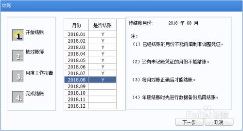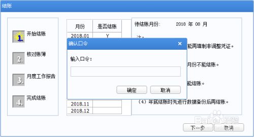 輸入密碼口令后,2018年8月份對應的“Y”消失,反結(jié)賬成功!點擊“取消”按鈕,退出結(jié)賬窗口。