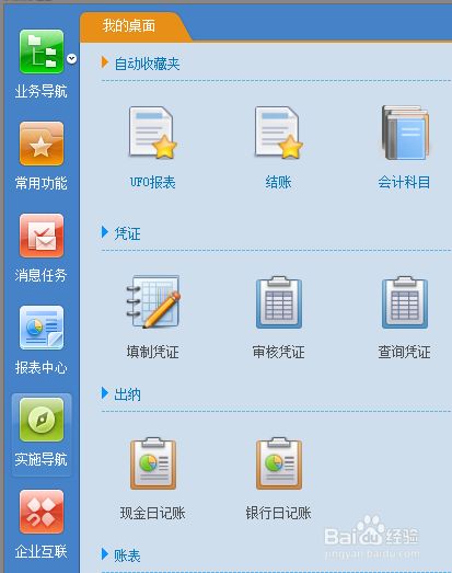 繼續(xù)分享,反記賬的操作!在U8界面選擇“實施導航”!
